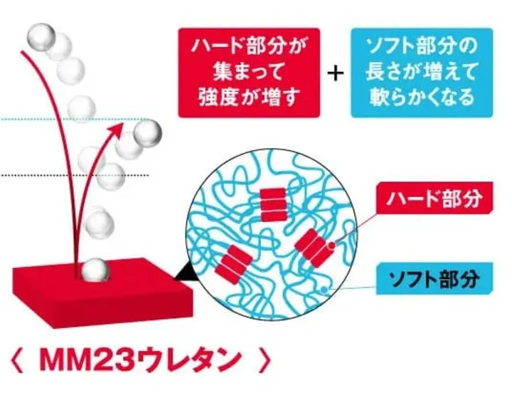 さらに、打撃部のウレタン厚を従来モデルよりも厚い18mmへとアップデート。厚さが増すことで、反発力が向上し、芯を外した場合でも打球の伸びを実感できます。