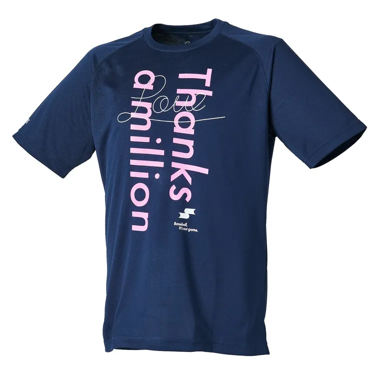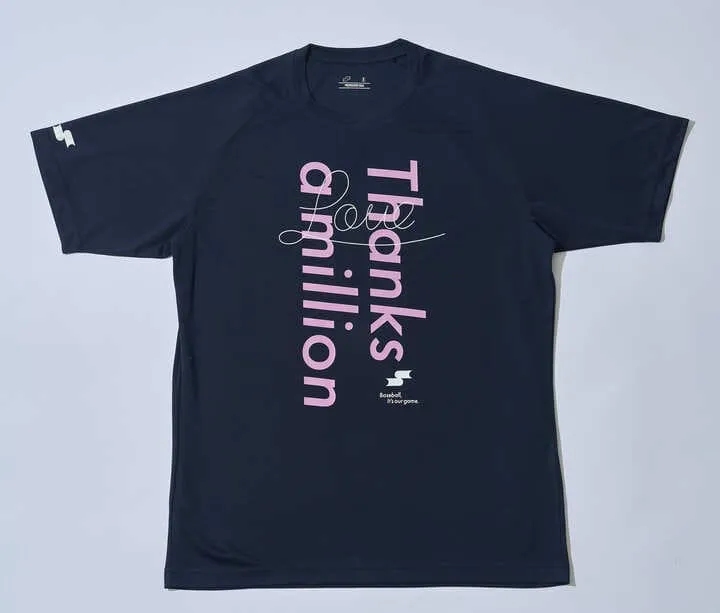 ネイビーを基調とし、前面に「Thanks a million(本当にありがとう)」を淡いピンクでデザインした感謝を伝える特別なTシャツです。ジュニアサイズから大人サイズまで展開し、チームでおそろいにしたり、お母さんへのプレゼントにおすすめの一着です。SSK公式オンラインショップ限定で、3月24日(火)から3月31日(火)まで予約を受け付けます。